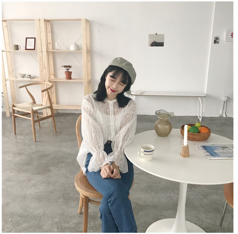 上品な刺繍 インナー付きのセットアップブラウス