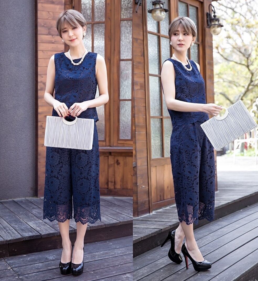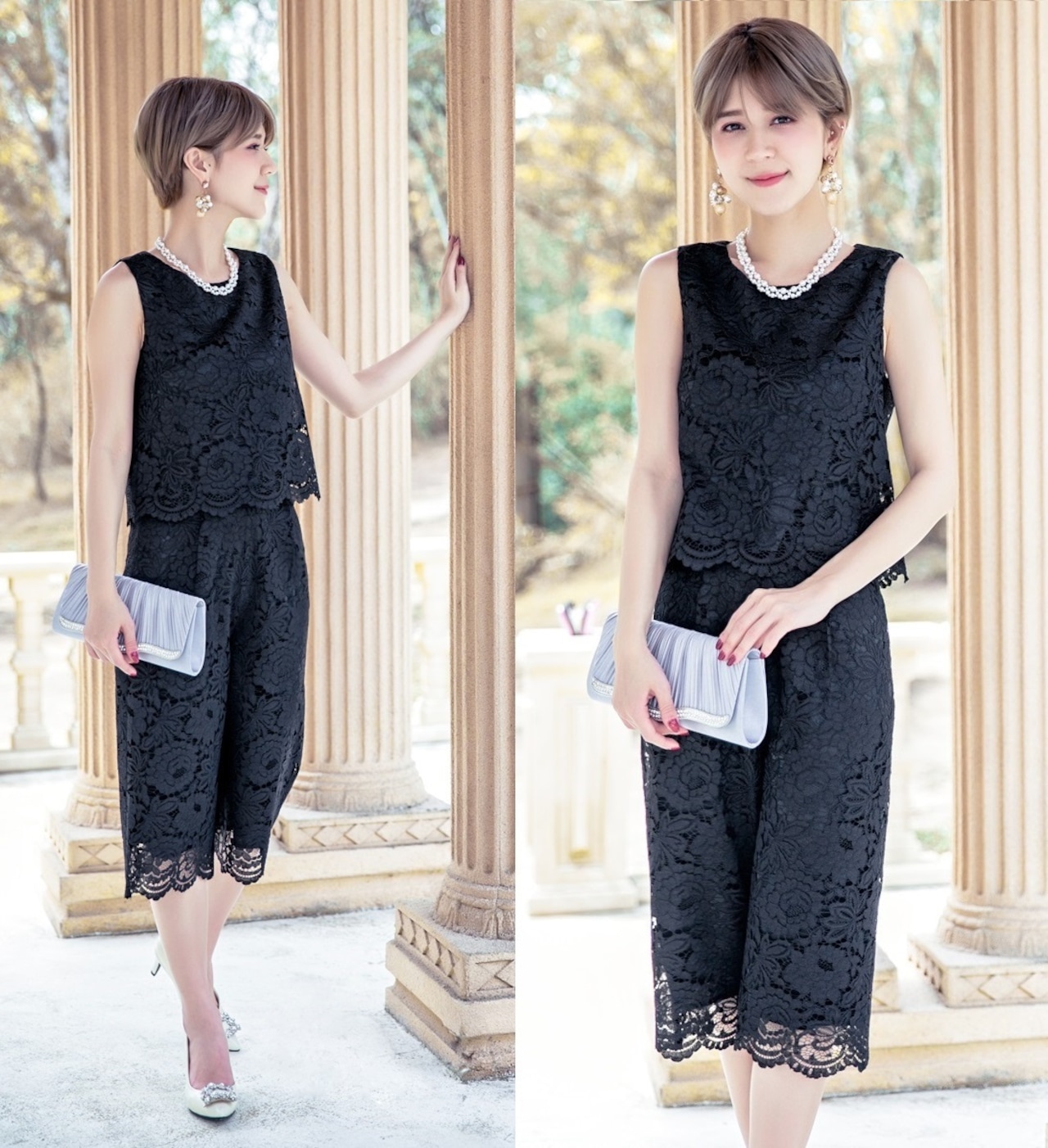 ★万能パンツドレス★司会 披露宴 パーティー 結婚式 出かけ 総レース パンツドレス