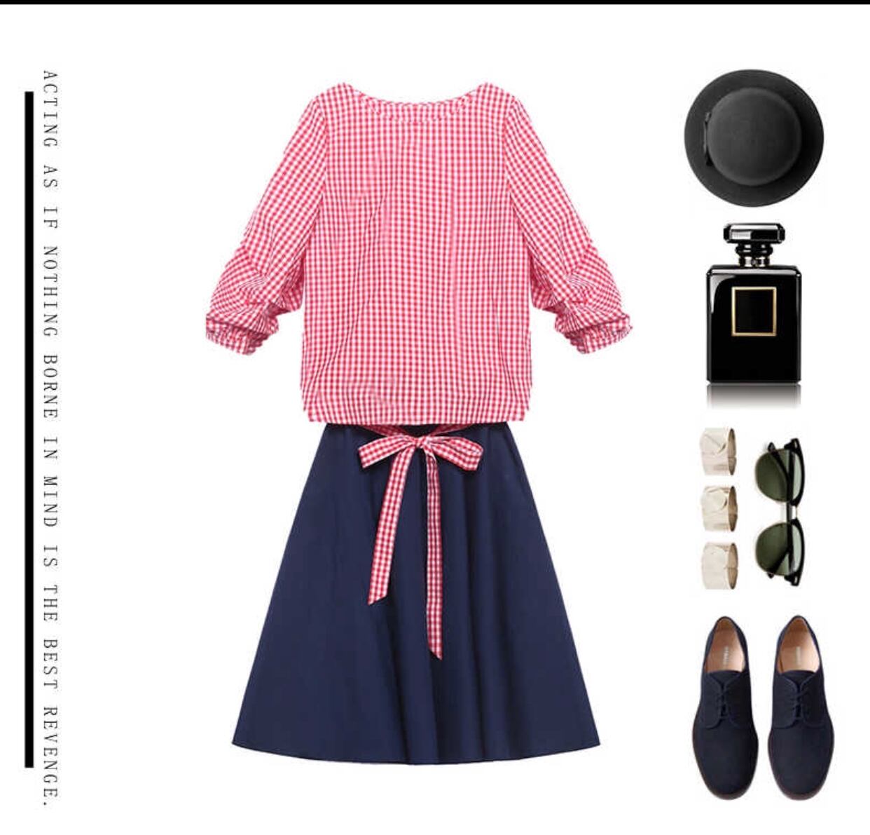 ギンガムチェックのシャツとネイビーフレアスカートで大人っぽくコーデ