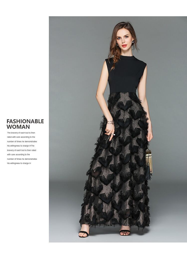 タッセルのハード柄とキラキラ星柄を見えるオシャレ満点の異素材切替えロングドレス!