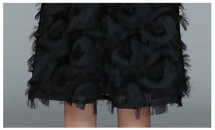 個性主張タッセルドレスワンピース!デコルテや袖が透け感があるレースに切替、大人女性セクシー、さりげなくアピールが魅力につながる