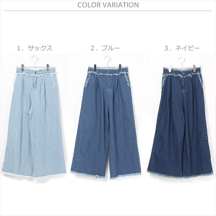 ウエストフリンジ デニム ワイドパンツ レディース ボトムス スカンツ ジーンズ