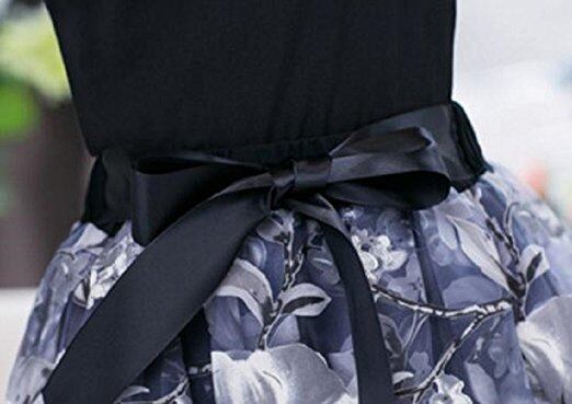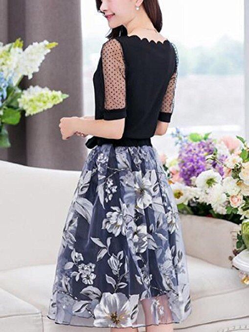 清涼感のあるお花柄のスカートが、シックで大人の女性らしさを演出☆美脚見せ効果も期待できる膝丈Aライン