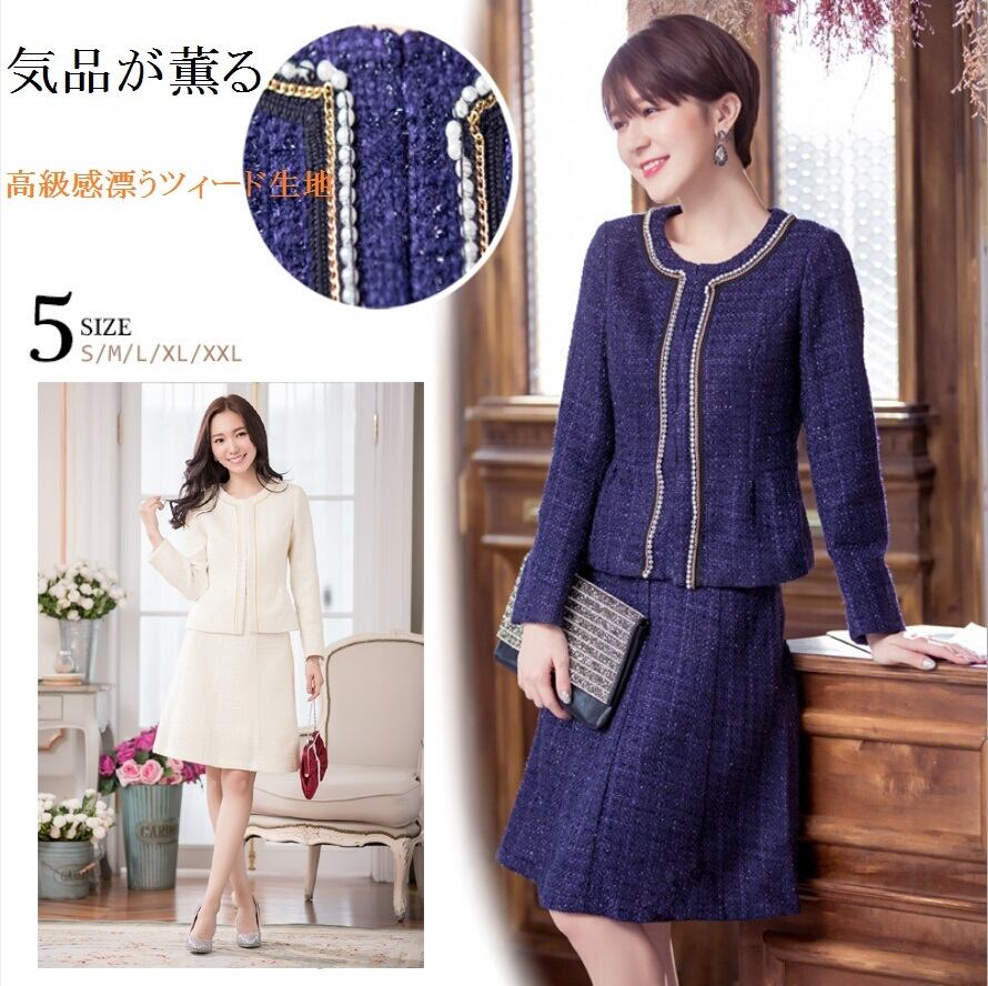 ★通勤 パーティー 結婚式 卒業式 入園式 入学式 ツィード 2枚セット ドレス ワンピース